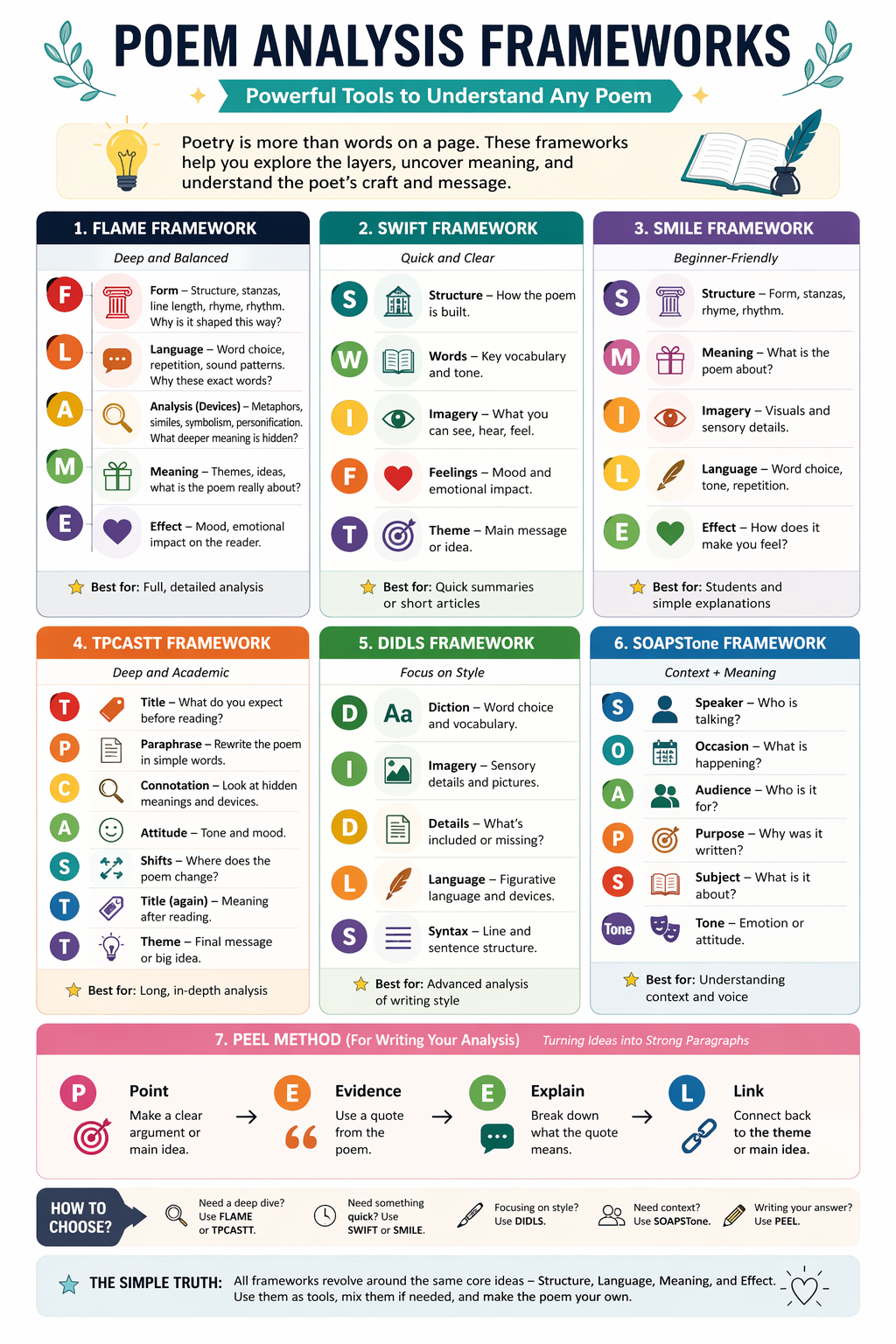 In this guide, you’ll learn the most useful poem analysis frameworks, how they work, and when to use each one.